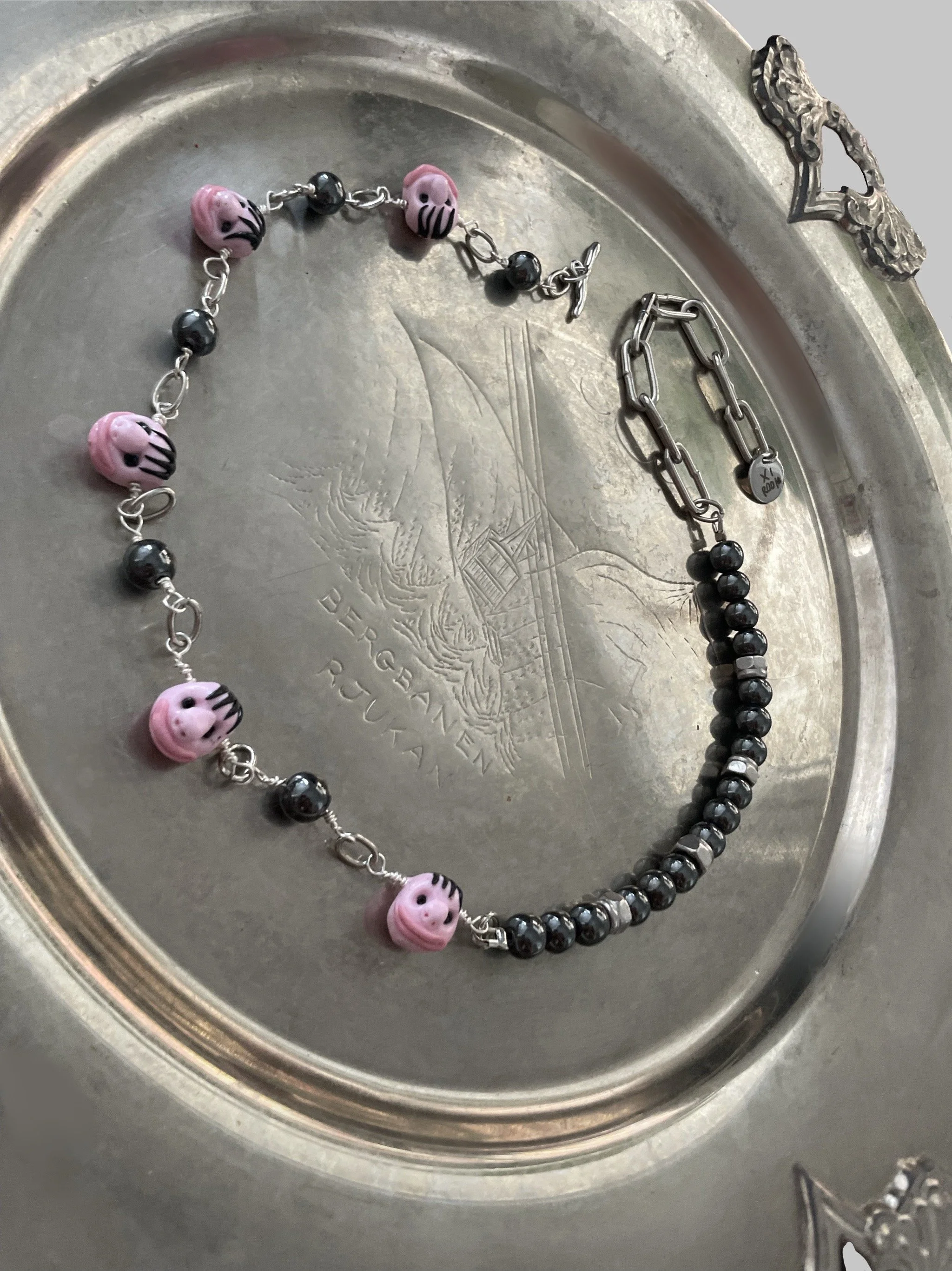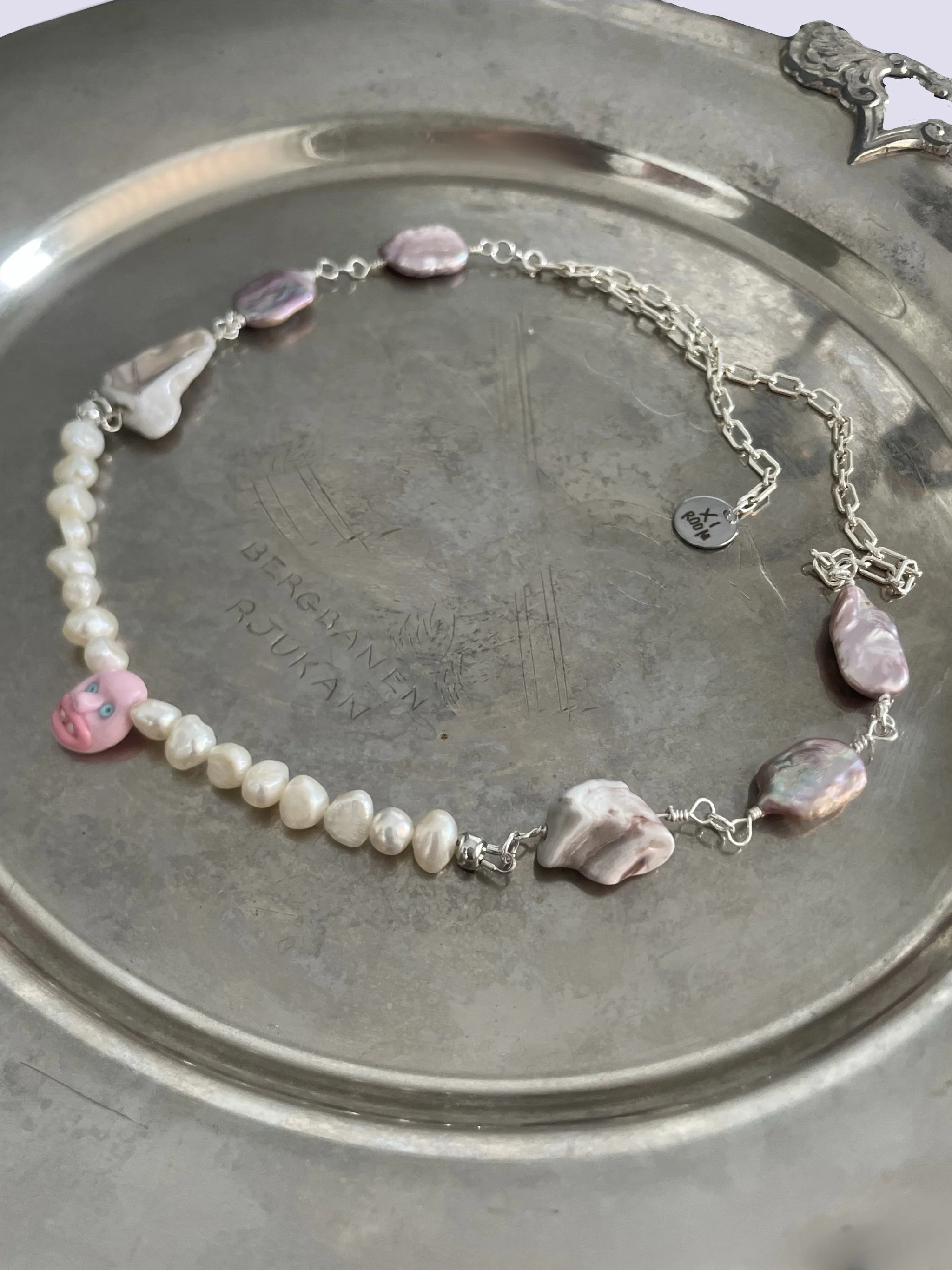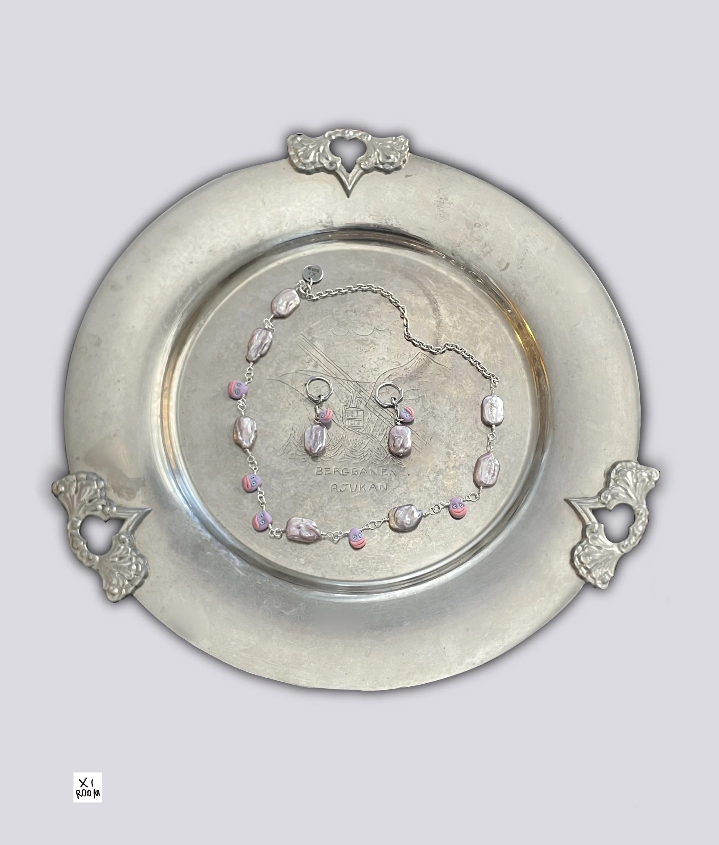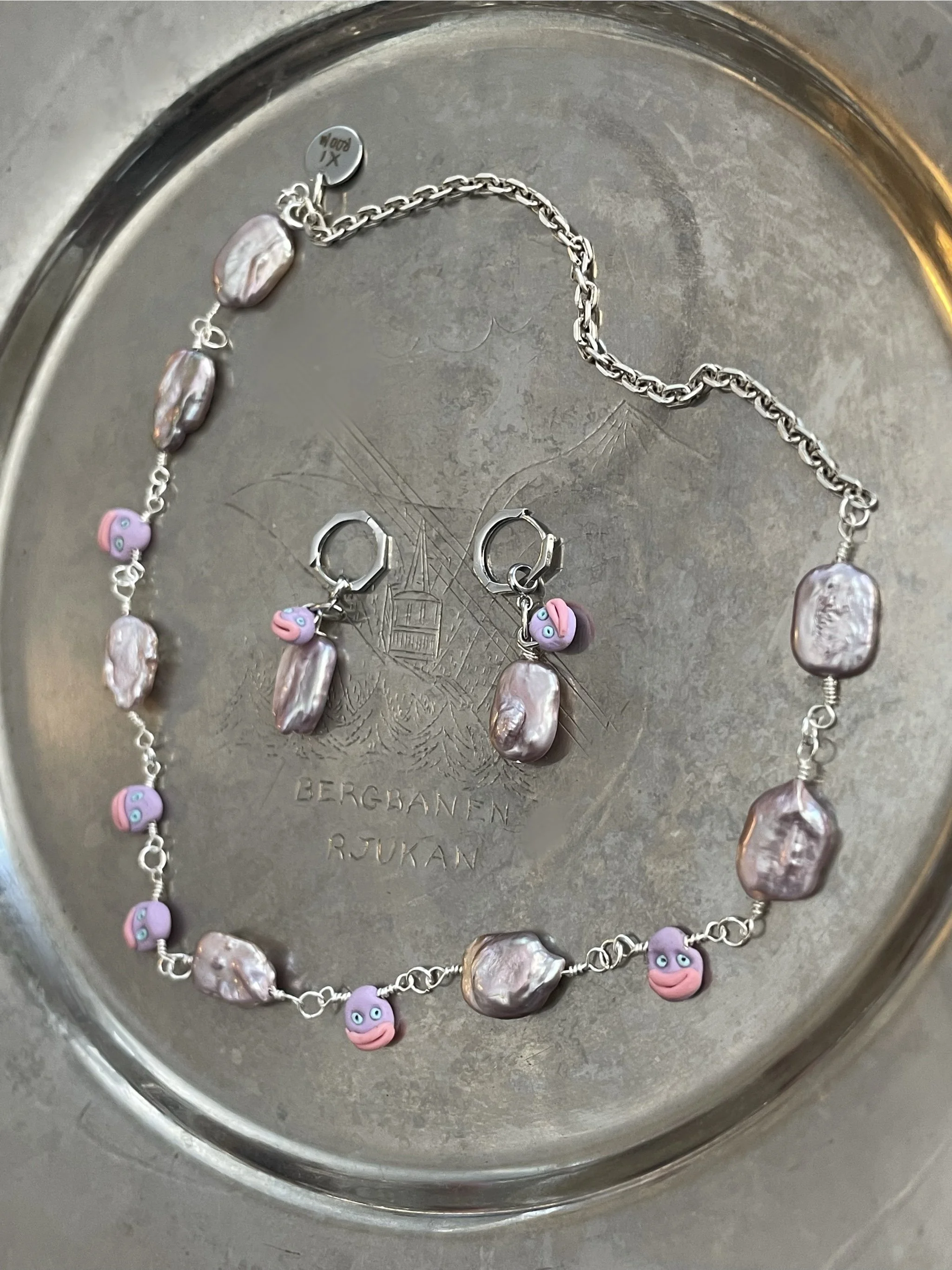 The gloomy medieval sculptural portraits of the Nidaros Cathedral in Trondheim, where the artist was born, has a vital point in her inspiration to create a large jewelry collection - “Momento mori”. She has interpreted the language of medieval «emoji» into her jewelry pieces. All jewelry is hand made, using materials such as pearls, semi-precious and precious stones, silver, the edges are made of polyester clay treated with a special lacquer coating.