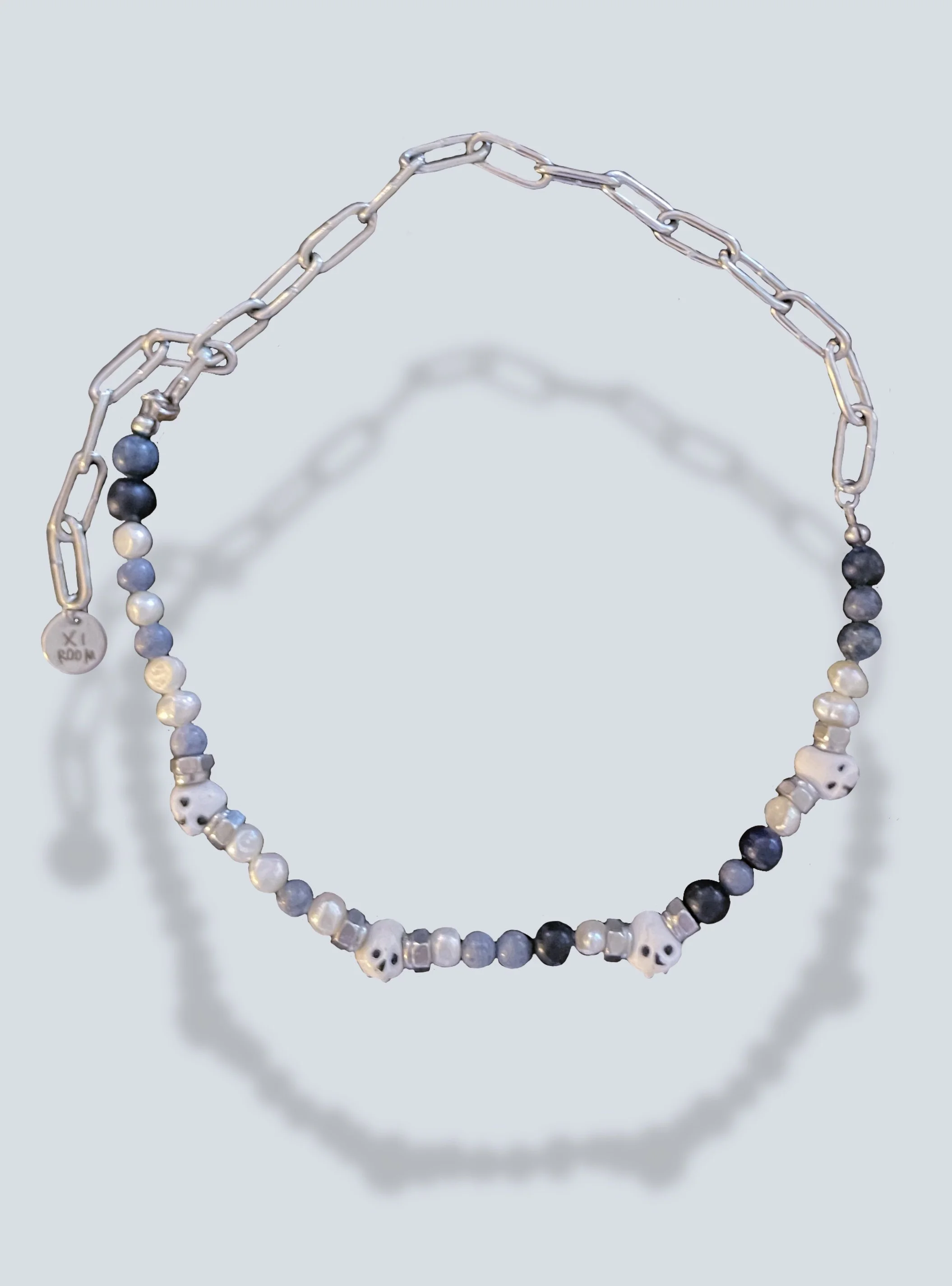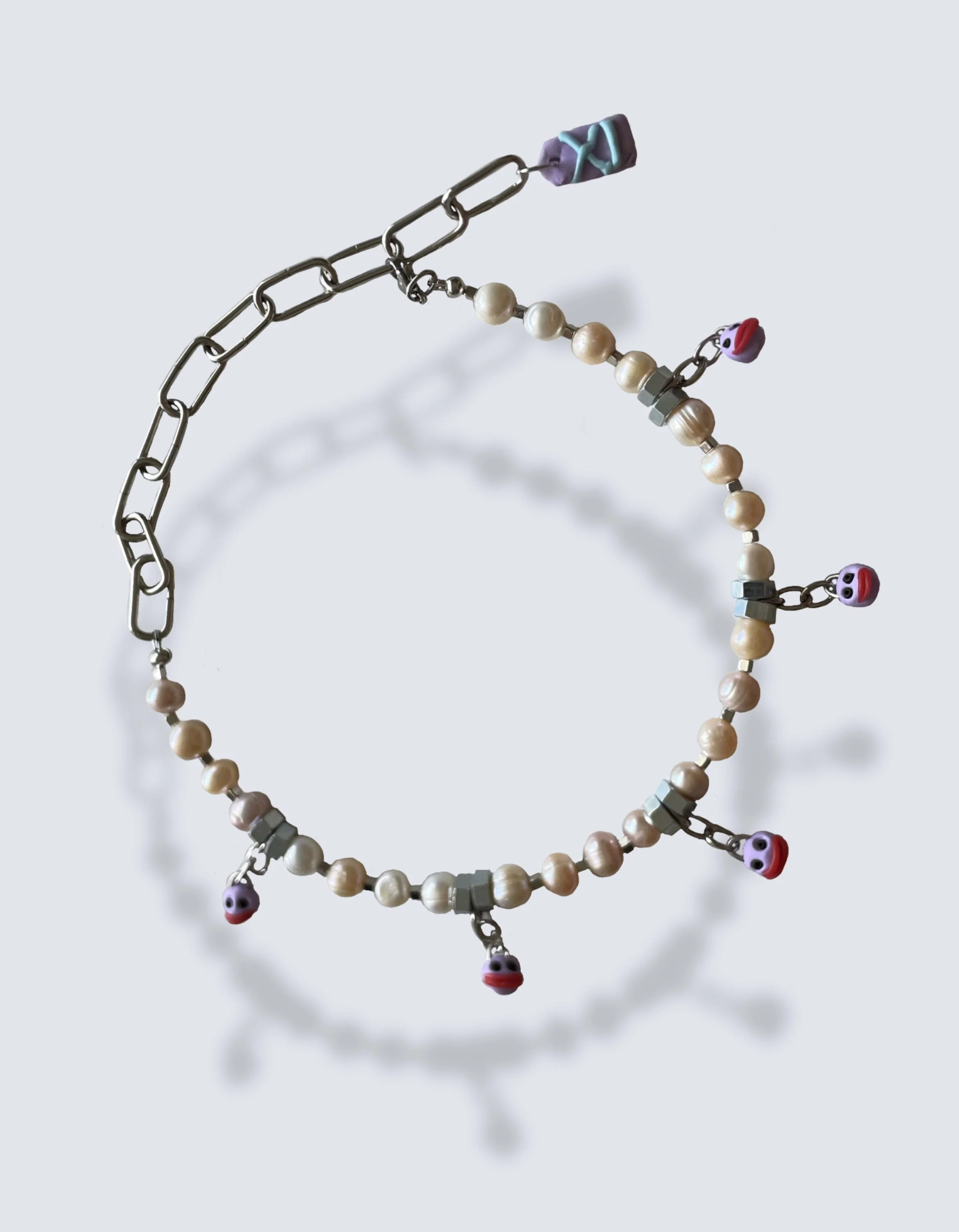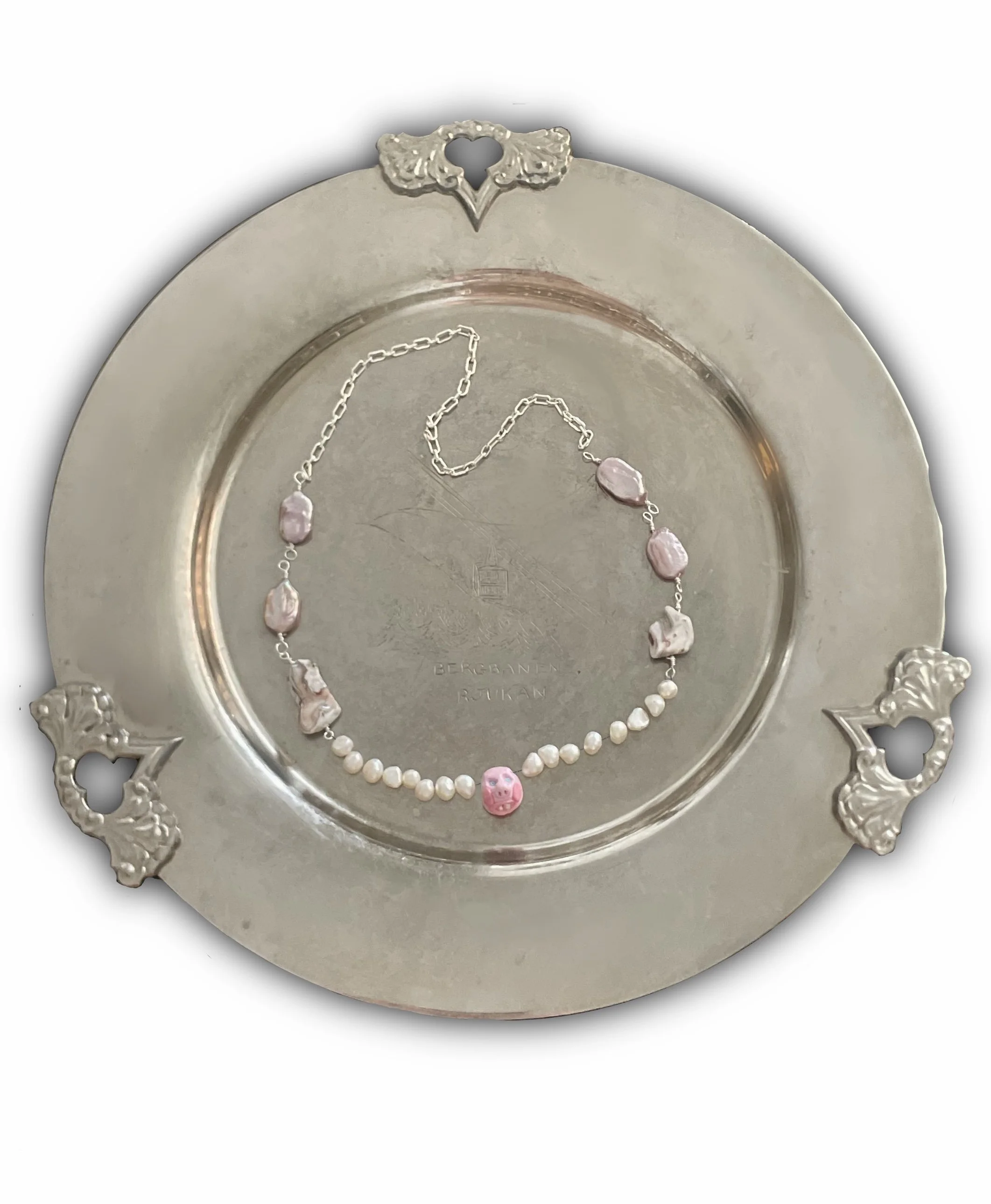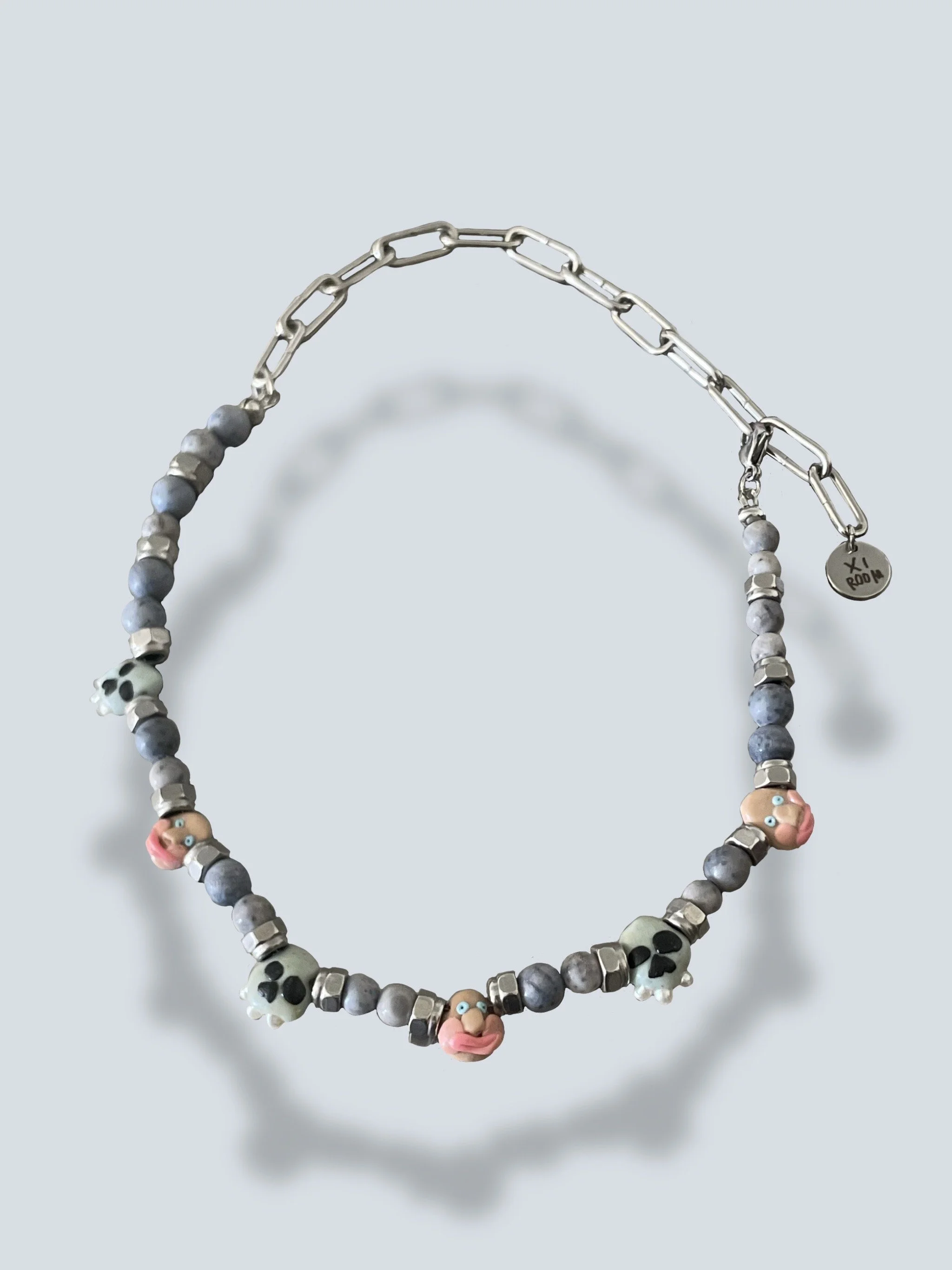 The gloomy medieval sculptural portraits of the Nidaros Cathedral in Trondheim, where the artist was born, has a vital point in her inspiration to create a large jewelry collection - “Momento mori”. She has interpreted the language of medieval «emoji» into her jewelry pieces. All jewelry is hand made, using materials such as pearls, semi-precious and precious stones, silver, the edges are made of polyester clay treated with a special lacquer coating.